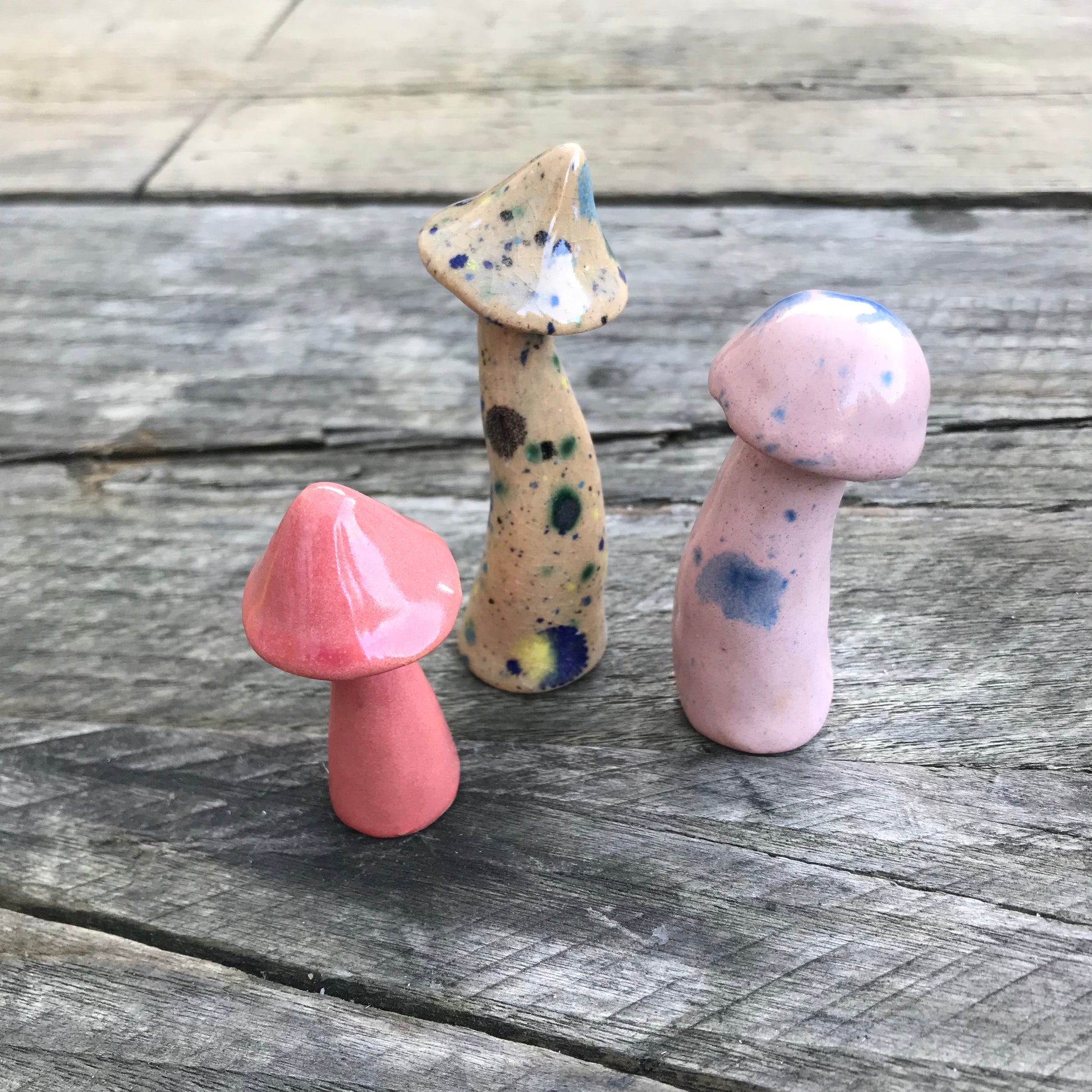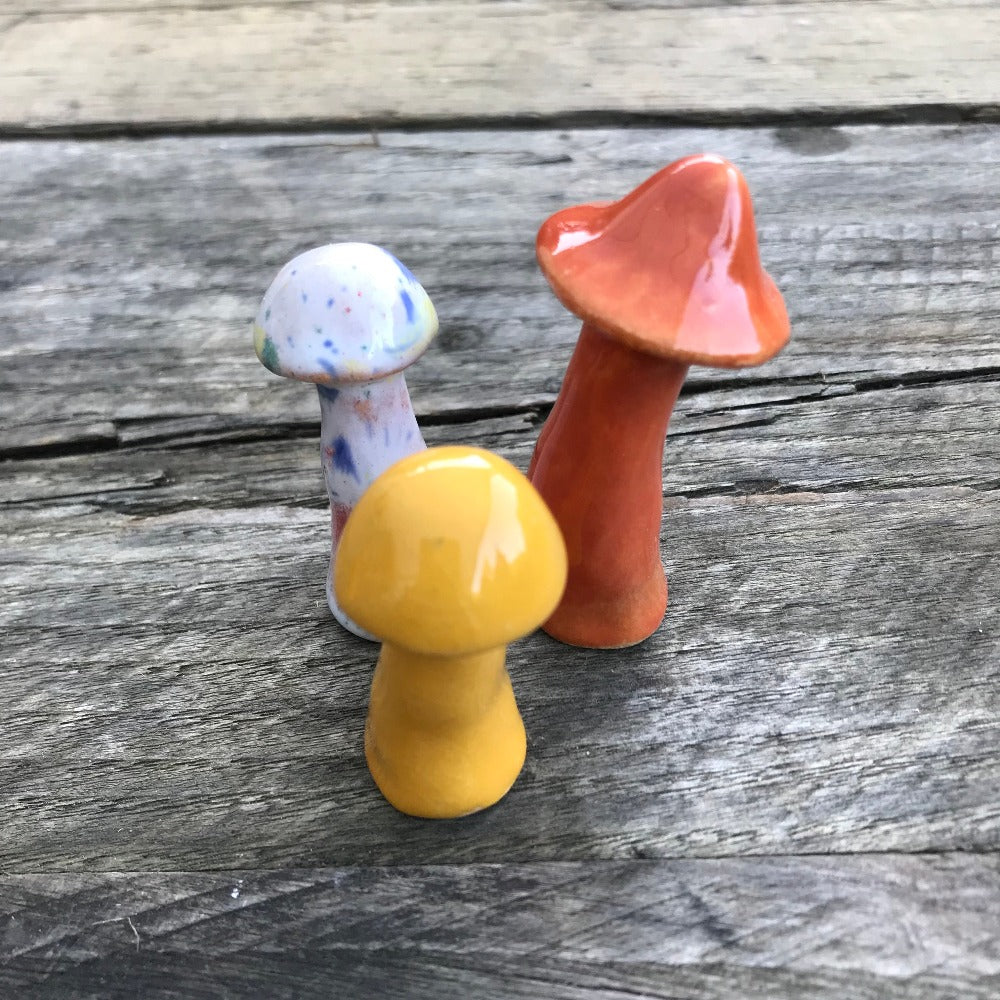 These little ceramic mushrooms are great for placing on your windowsill or on a bookshelf. Hand made and glazed in a variety of colours, shapes and sizes.