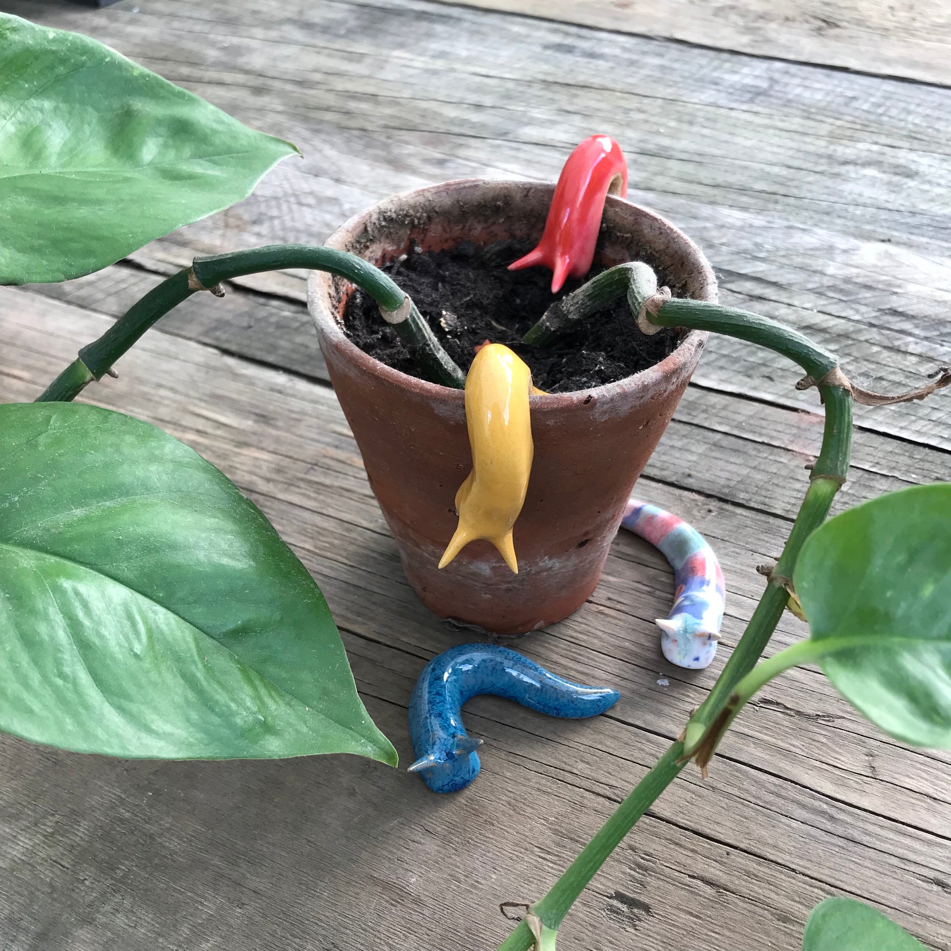 These life size ceramic garden slugs are great for hiding in your pot plants or placing on a bookshelf. Hand made and glazed in a variety of colours, shapes and sizes.
